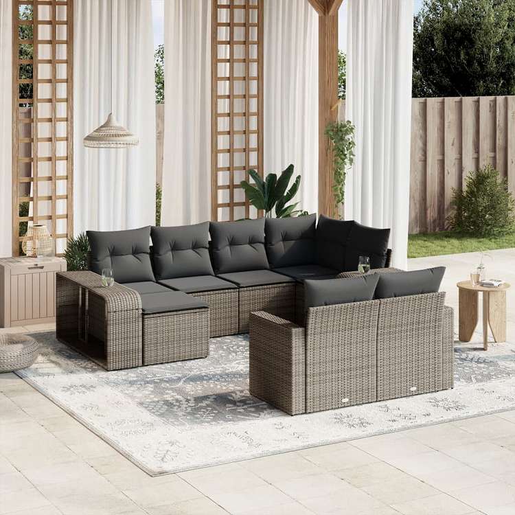 vidaXL ガーデンソファ10点セット クッション付き ポリラタン製 グレー家具 アウトドア家具 屋外椅子 屋外用組み合わせソファセット(代引不可)