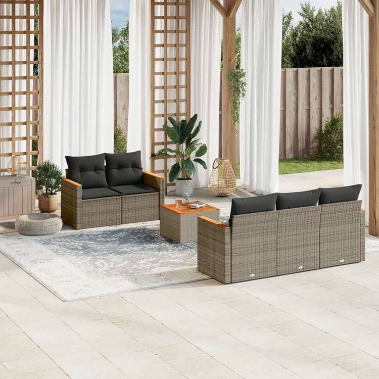 vidaXL ガーデンソファ6点セット クッション付き グレー ポリラタン製家具 アウトドア家具 屋外家具セット(代引不可)