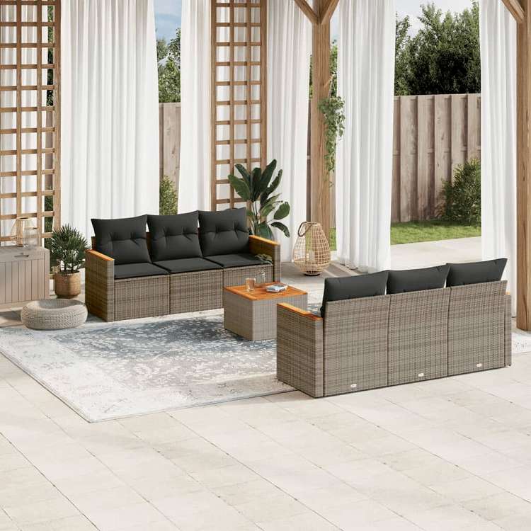 vidaXL ガーデンソファ7点セット クッション付き グレー ポリラタン家具 アウトドア家具 屋外家具セット(代引不可)