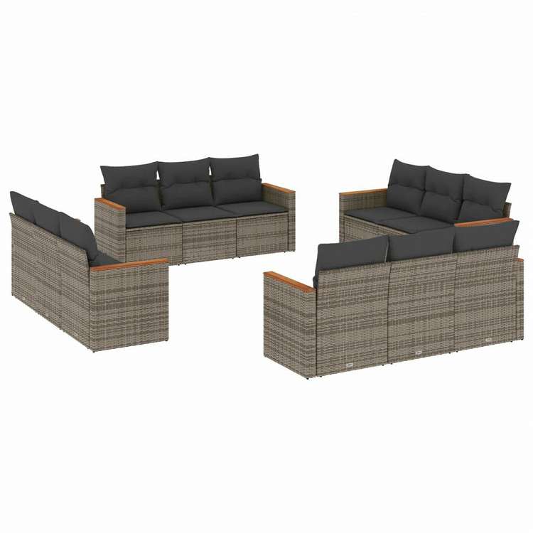 vidaXL ガーデンラウンジ12点セット クッション付き グレー ポリラタン製家具 アウトドア家具 屋外家具セット(代引不可)
