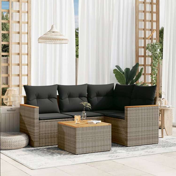 vidaXL ガーデンソファ5点セット クッション付き グレー ポリラタン製家具 アウトドア家具 屋外家具セット(代引不可)