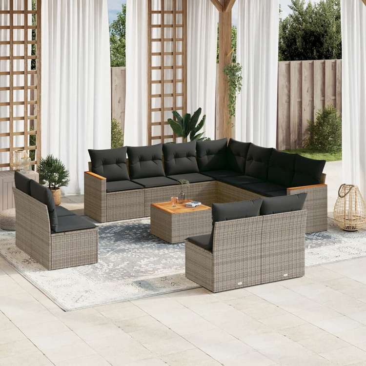 vidaXL ガーデンラウンジ12点セット クッション付き グレー ポリラタン製家具 アウトドア家具 屋外家具セット(代引不可)