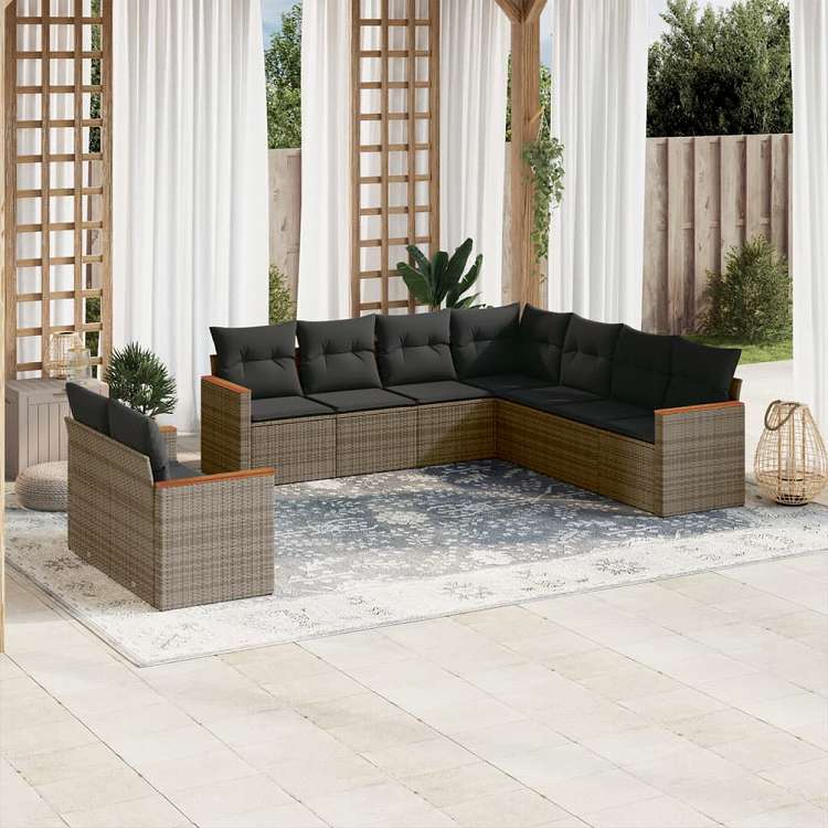 vidaXL ガーデンソファ9点セット クッション付き ポリラタン製 グレー家具 アウトドア家具 屋外家具セット(代引不可)