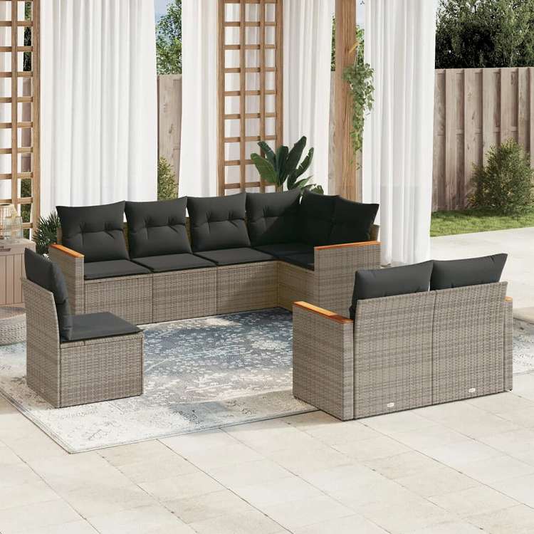 vidaXL ガーデンラウンジ8点セット クッション付き グレー ポリラタン製家具 アウトドア家具 屋外家具セット(代引不可)