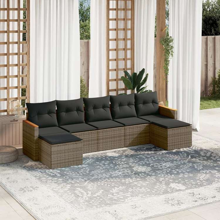 vidaXL ガーデンソファ7点セット クッション付き グレー ポリラタン家具 アウトドア家具 屋外家具セット(代引不可)