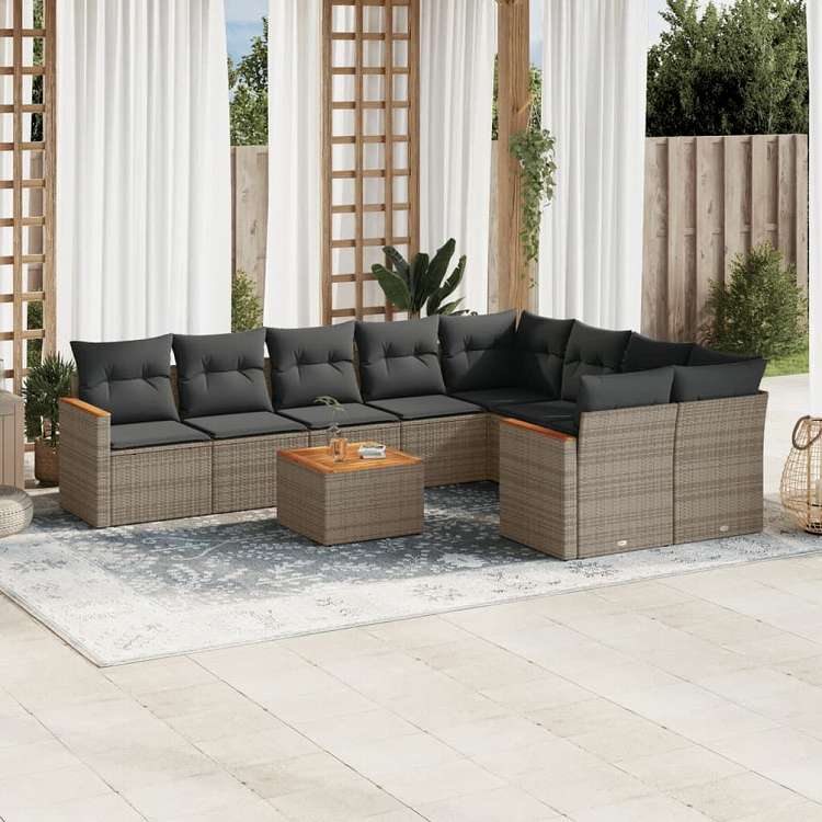vidaXL ガーデンソファ10点セット クッション付き ポリラタン製 グレー家具 アウトドア家具 屋外家具セット(代引不可)