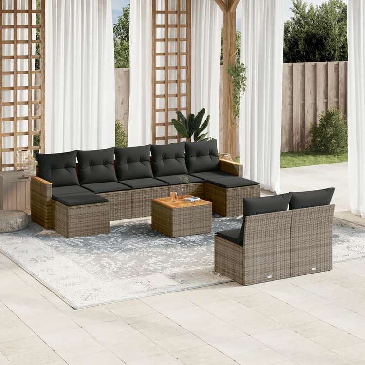 vidaXL ガーデンソファ10点セット クッション付き ポリラタン製 グレー家具 アウトドア家具 屋外家具セット(代引不可)