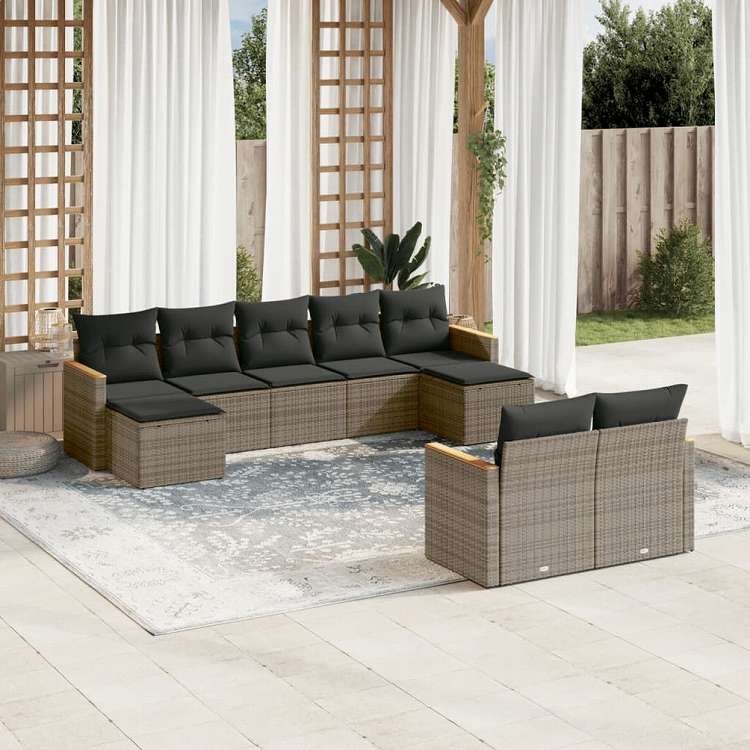 vidaXL ガーデンソファ9点セット クッション付き ポリラタン製 グレー家具 アウトドア家具 屋外家具セット(代引不可)
