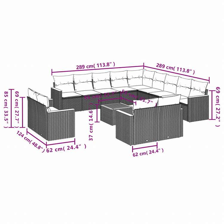 vidaXL ガーデンラウンジ14点セット クッション付き グレー ポリラタン製家具 アウトドア家具 屋外家具セット(代引不可)