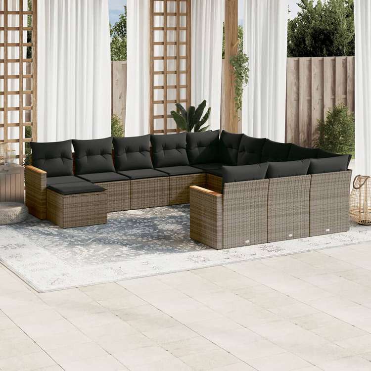 vidaXL ガーデンラウンジ12点セット クッション付き グレー ポリラタン製家具 アウトドア家具 屋外家具セット(代引不可)