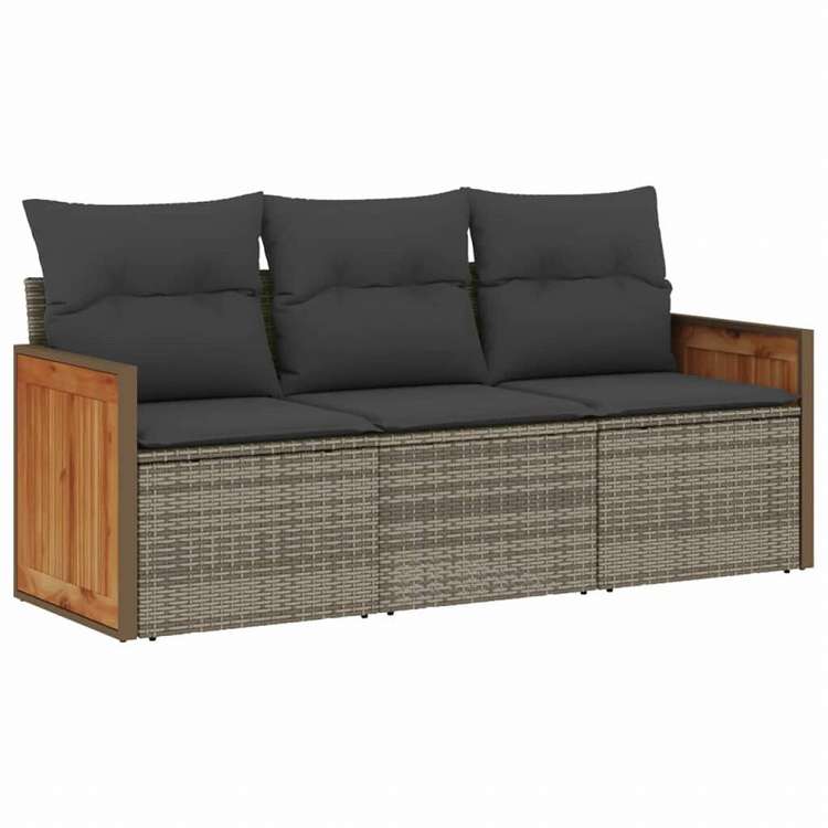vidaXL ガーデンソファ3点セット クッション付き 灰色 ポリラタン製家具 アウトドア家具 屋外家具セット(代引不可)