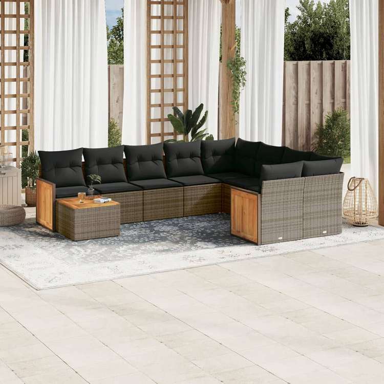 vidaXL ガーデンソファ10点セット クッション付き ポリラタン製 グレー家具 アウトドア家具 屋外家具セット(代引不可)