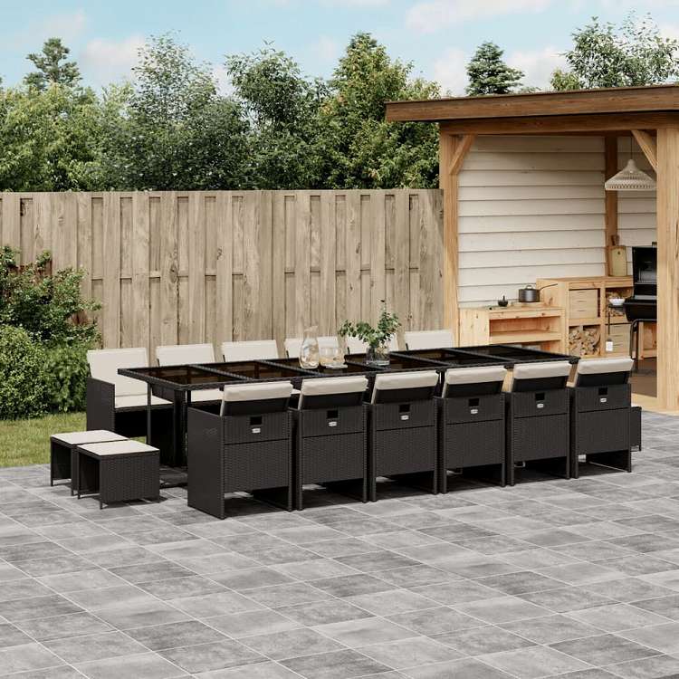 vidaXL ガーデンダイニング17点セット クッション付き ブラック ポリラタン製家具 アウトドア家具 屋外家具セット(代引不可)
