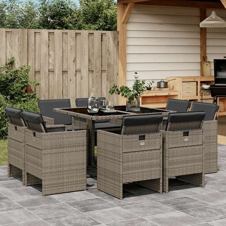 vidaXL ガーデンダイニングセット 9点 クッション付き グレー ポリラタン製家具 アウトドア家具 屋外家具セット(代引不可)