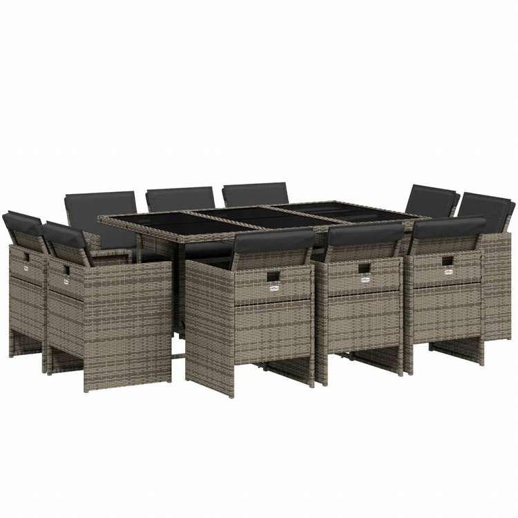 vidaXL ガーデンダイニング11点セット クッション付き グレー ポリラタン製家具 アウトドア家具 屋外家具セット(代引不可)