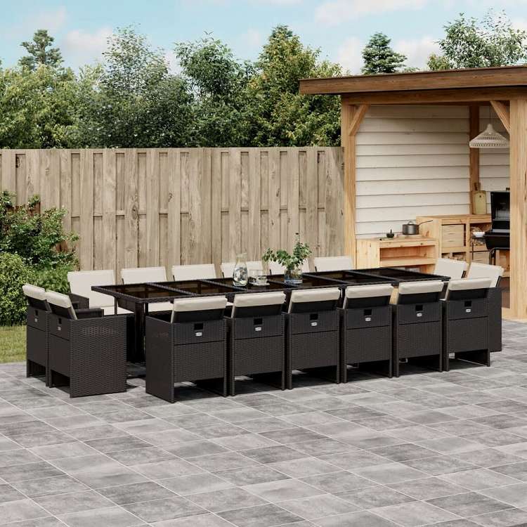 vidaXL ガーデンダイニング17点セット クッション付き ブラック ポリラタン製家具 アウトドア家具 屋外家具セット(代引不可)