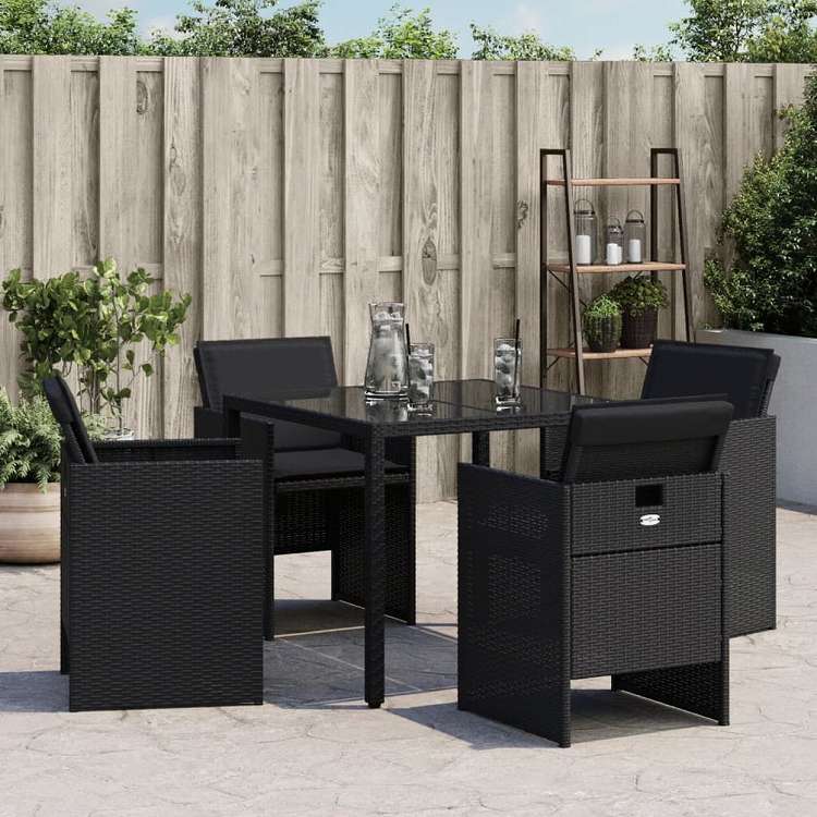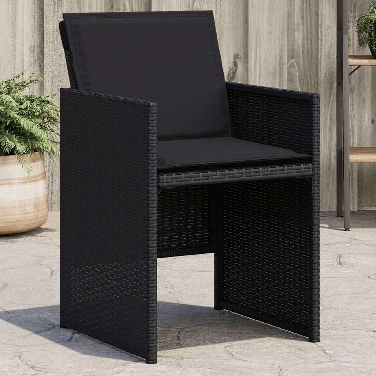 vidaXL ガーデンチェア クッション付き 4点 ブラック ポリラタン製家具 アウトドア家具 屋外椅子 アウトドアベンチチェア(代引不可)