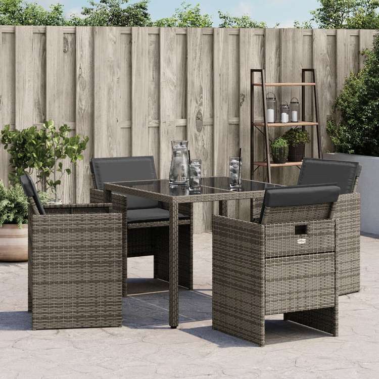 vidaXL ガーデンチェア クッション付き 4点 グレー ポリラタン家具 アウトドア家具 屋外椅子 アウトドアベンチチェア(代引不可)