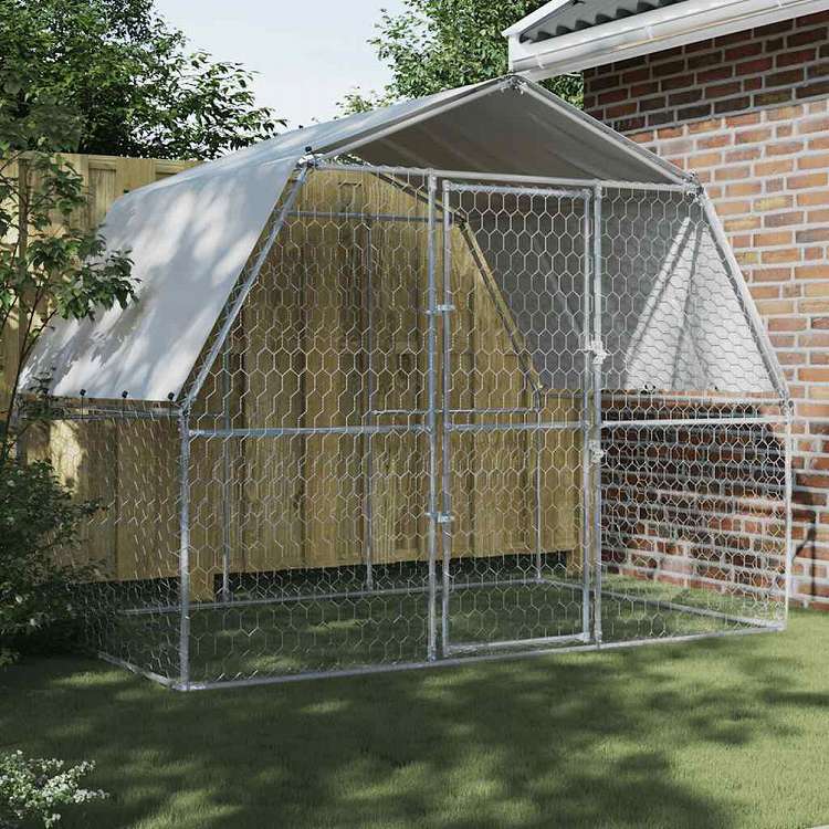 vidaXL 犬用ケージ ルーフ&ドア付き シルバー 亜鉛メッキ鋼製動物&ペット用品 ペット用品 犬用品 ドッグハウス(代引不可)