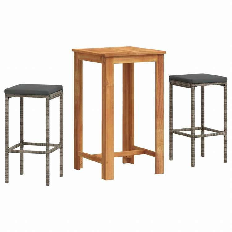 vidaXL ガーデンバー 3点セット グレー アカシア無垢材&ポリラタン家具 アウトドア家具 屋外家具セット(代引不可)
