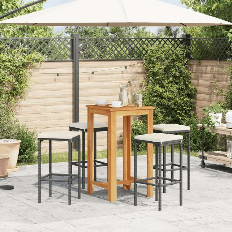 vidaXL ガーデンバー 5点セット ブラック アカシア無垢材&ポリラタン家具 アウトドア家具 屋外家具セット(代引不可)