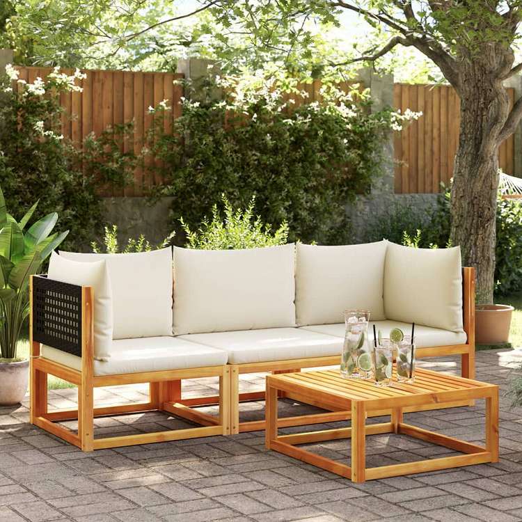 vidaXL ガーデンソファ3点セット クッション付き アカシア無垢材家具 アウトドア家具 屋外家具セット(代引不可)
