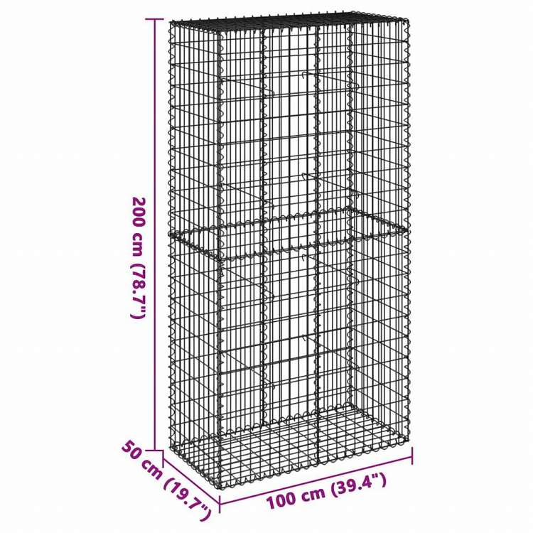 vidaXL 蛇籠バスケット カバー付き 100x50x200cm 亜鉛メッキ鉄ホーム&ガーデン 芝&ガーデン ガーデニング 鉢植え・プランター(代引不可)