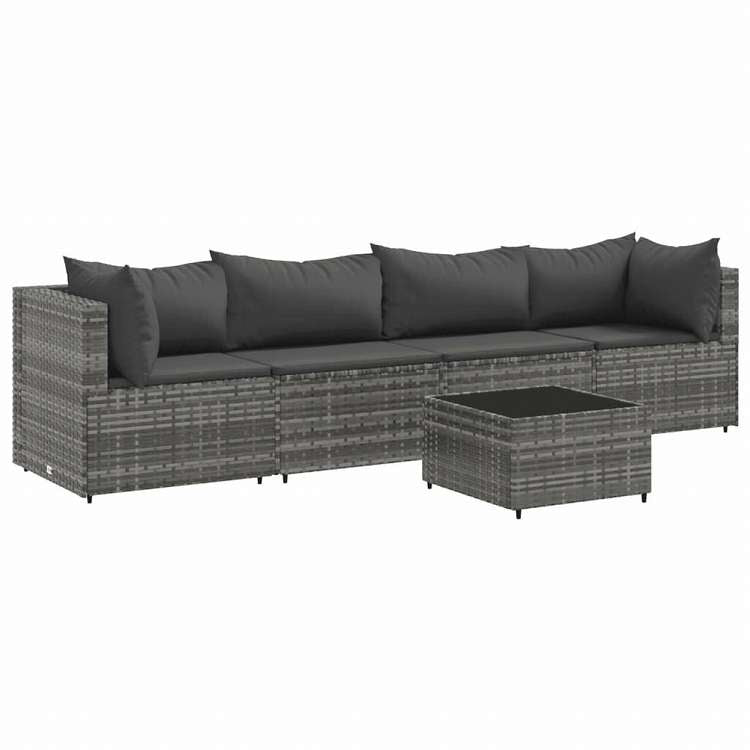 vidaXL ガーデンラウンジ5点セット クッション付き グレー ポリラタン製家具 アウトドア家具 屋外家具セット(代引不可)