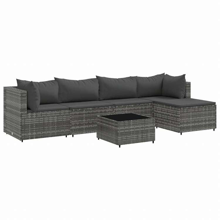 vidaXL ガーデンラウンジ5点セット クッション付き グレー ポリラタン製家具 アウトドア家具 屋外家具セット(代引不可)