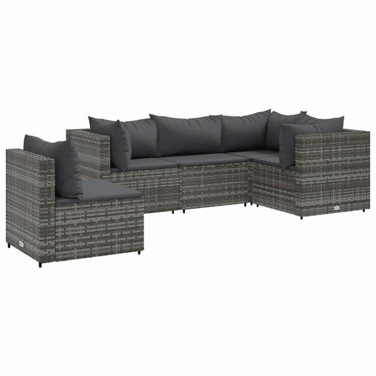 vidaXL ガーデンラウンジ5点セット クッション付き グレー ポリラタン製家具 アウトドア家具 屋外家具セット(代引不可)