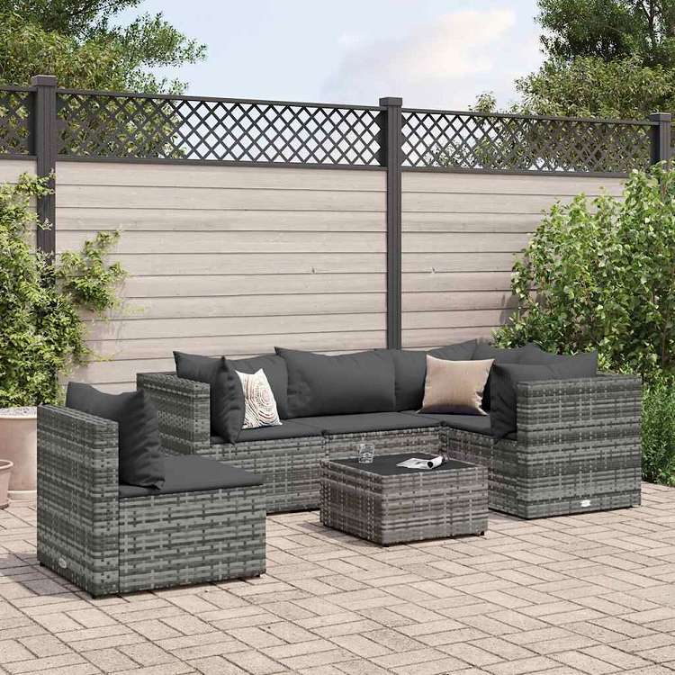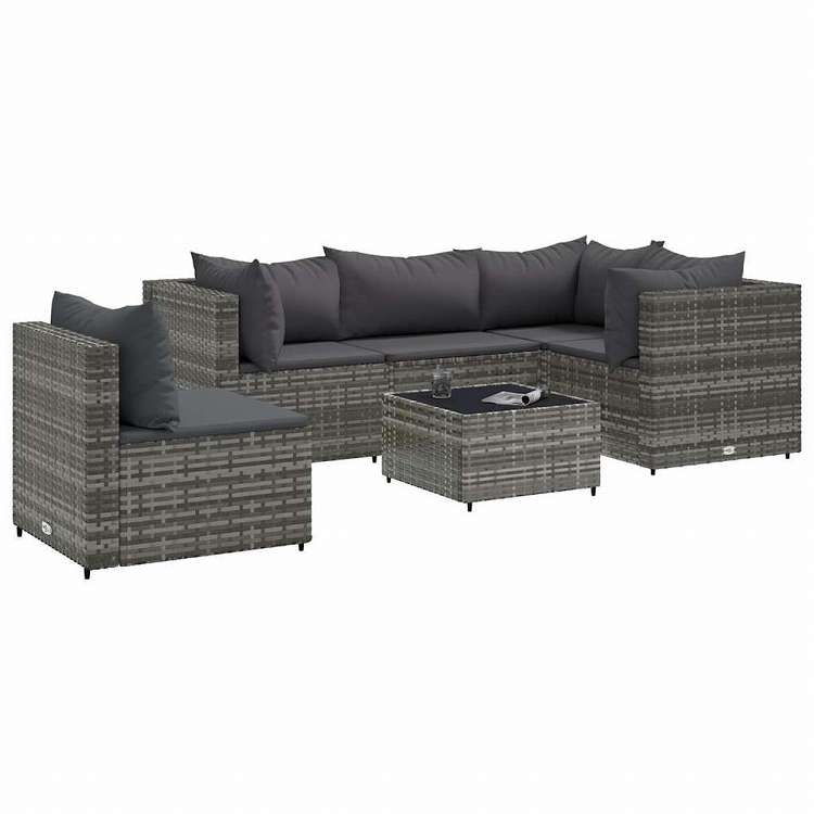 vidaXL ガーデンラウンジ6点セット クッション付き グレー ポリラタン製家具 アウトドア家具 屋外家具セット(代引不可)
