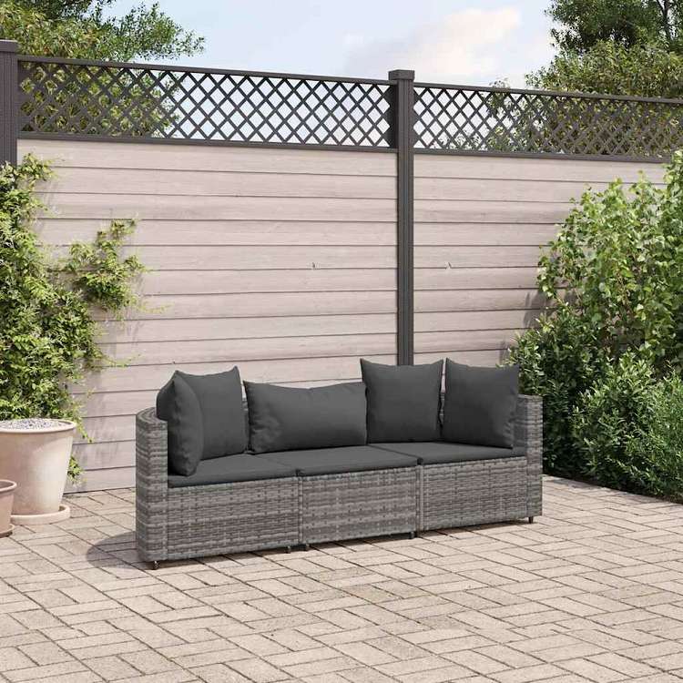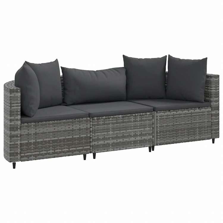 vidaXL ガーデンソファ3点セット クッション付き 灰色 ポリラタン製家具 アウトドア家具 屋外家具セット(代引不可)